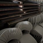 20 METRES DE RAYONNAGES METALLIQUES – ESCALIER GALVA – 13 METRES DE RAYONNAGES GALVA – ENVIRON 30 M2 AVEC PLANCHE AGGLOMERE – PLANCHE GALVA