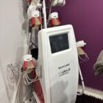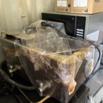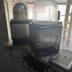 2 Mélangeurs de peinture TECMEC SIRIO HH 2020 – Mélangeur démonté – 11 Mètres de rayonnages métalliques – 3 Mètres de gondoles orange et plateaux – Mélangeurs SIKKENS et MASTER