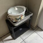 Ventilateur mural FANELITE – Chariot plat métallique – Unité centrale PACKARD BELL – Ecran HANNS – Claviers – Souris – Serveur LENOVO THINKCENTER – Ecran AOC – Routeur TP LINK – Poste léger LENOVO – Ecran PHILIPS – Téléphone mobile REDM – Escabeau aluminium trois marches – Armoire haute métallique – Réfrigérateur MIDEA (hors service) – Four à micro ondes ZANUSSI – Machine à café ELECTROLUX – Chargeur/démarreur SODISMART – 3 Caméras – Enregistreur