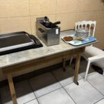 Split KYOSUN 24000 BTU – Extincteur – Vitrine 4 faces – Comptoir de caisse 5 m – 2 Fauteuils dactylo – Réfrigérateur table top avec four à micro ondes – Ordinateur portable COMPAQ – 2 Douchettes – Imprimante HP 5030 – Téléphone sans fil