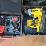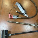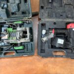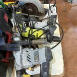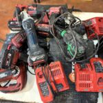 Perforateur HIKOKI DH 40 MC – Presse à sertir hydraulique STANLEY DUBUIS BPE 055 – Coffret métallique avec dispositif de mise à la terre et en court circuit pour réseau aérien NUS HTA de marque DARENCOURT WIZZ2/35 – Environ 30 barrières de chantier rouge – Aiguille sur enrouleur jaune – Scie à sol GOLZ FS 125 de 2017 – Scie à béton PARTNER K 1250