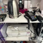 4 Chaises visiteurs tissu vert – Imprimante HP 8710 – Unité centrale THINKSREVER LENOVO TS 130 – Tablette – Téléphone sans fil – Table de bureau stratifié en angle avec caisson – NAS SYNOLOGY DDS 120 – Imprimante HP M 1212 – Unité centrale LENOVO – Tiroir caisse – Ecran PHILIPS – Onduleur – Casier 12 tiroirs PVC noir – Imprimante HP 9010 – Armoire basse deux rideaux noir – Casier PVC 12 tiroirs – 3 Extincteurs – 3 Gondoles doubles – 5 Gondoles simples – Hotte inox – Réfrigérateur table top