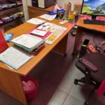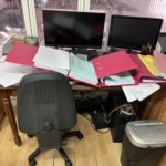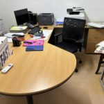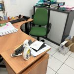 9 Bureaux pieds aluminium et plateau stratifié – 6 Caissons – 17 Fauteuils et chaises tissu – 2 Fauteuils dactylo tissu bleu, jaune et noir – Armoire haute stratifié une porte – 2 Armoires stratifié hautes deux portes – Armoire haute métallique deux rideaux noir – Destructeur de papiers HSM S 5 – Ecran LG – Ecran ASUS LHS – Purificateur d’air AIR TREATMENT – Tableau blanc – Machine à café KRUPS – Table bureau d’angle stratifié sur caisson – 2 Meubles présentoir en bois à casier 1 m – Unité centrale HP – Serveur HP PROLIANT DL 380 – Routeur CISCO