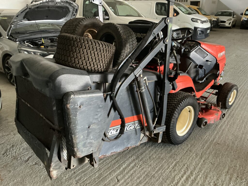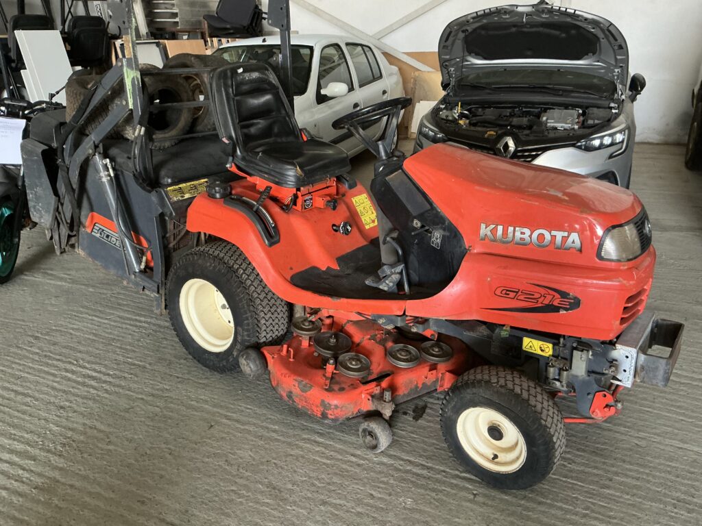 tondeuse auto portée kubota g21E – courroie hs – démarre à la clef – panier de ramassage hs – transmission av hs -1 566heures