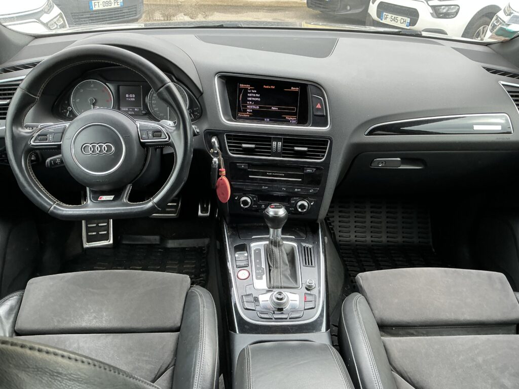 audi q5 3.0 tdi V6 312cv quattro – 2013 – 164 690km – bva – palettes au volant – ac regulée – vcd – ve4 – re (d hs) – to elect (hs) – velum hs et détendu – se chauffants – console mm audi – radar av et arr – cam de r – start stop – rlv – hayon élect – voyant ampoule allumé