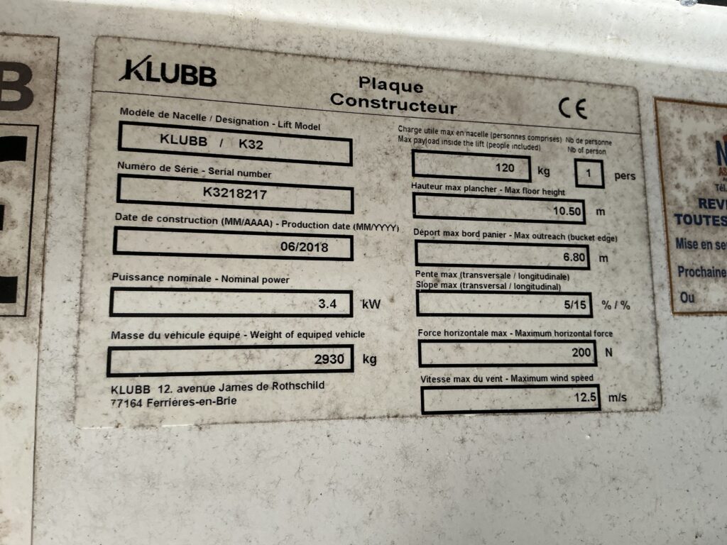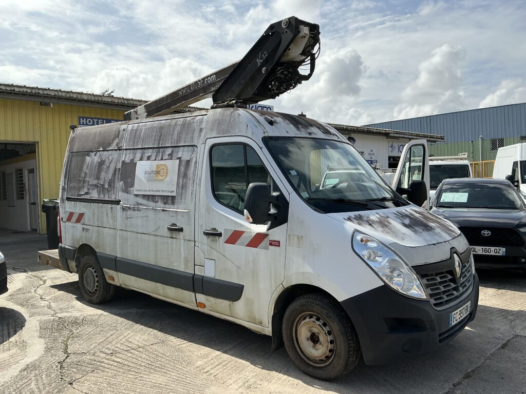 renault master nacelle 2.3 dci 130CV – nacelle klubb k32 10,5 m – 768heures – 2018 – 45 610km – vcd – ve2 – re – console tactile codée – ordi de bord – rlv –