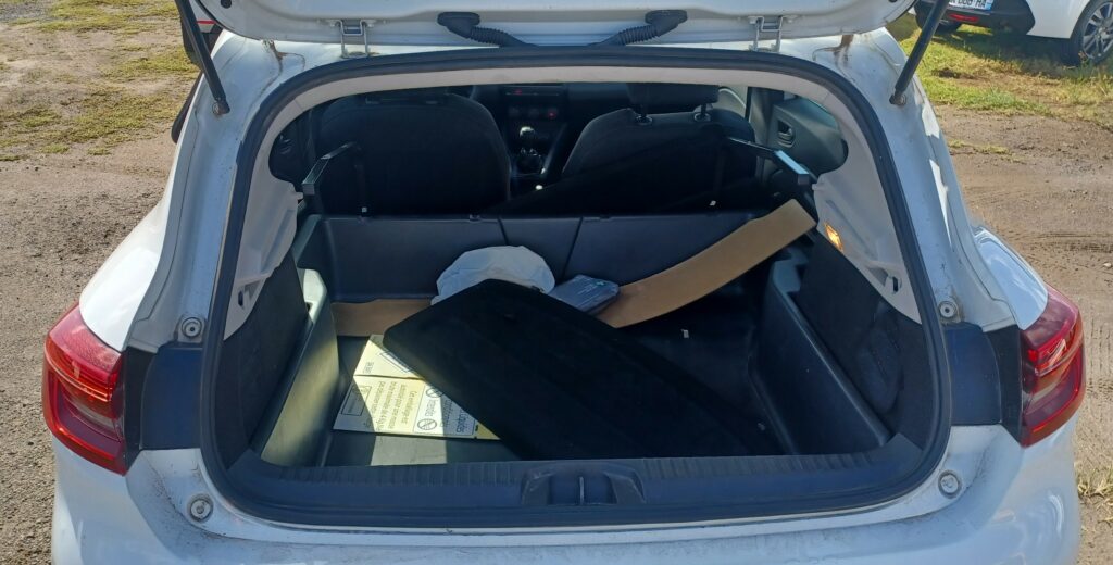 vasp renault clio 1.0 tce 90cv – 2021 – 124 896km – vcd – ve2 – re – ordi de bord – mm tactile – gps – bluetooth – rlv – start stop – rdr – bv6 – ac – banquette démontée dans le coffre