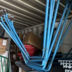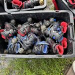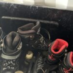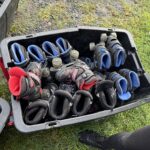 10 Aides aux movies sur 4 roulettes bleu (dont 1 HS) – Environ 105 rollers adulte différentes tailles – Environ 75 rollers enfant différentes tailles dont 9 cartons de 5 paires neufs – Environ lot d’environ 60 protections pour rollers et 20 casques (non contrôlés) – Lot d’environ 40 barrières de protection métallique – 19 Bacs de rangement PVC